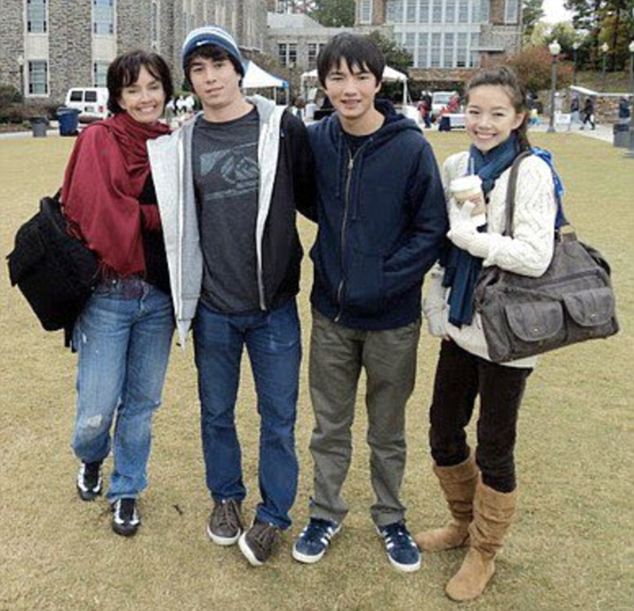 Her er et bilde av Donna Chen (venstre) med sine barn.