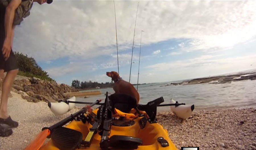 Plutselig oppdaget han noe komme mot ham. Idet den kom nærmere, så han at det var en vettskremt hund midt uti havet.