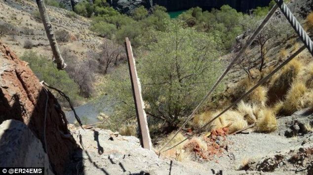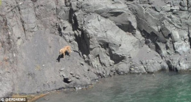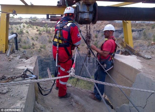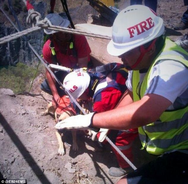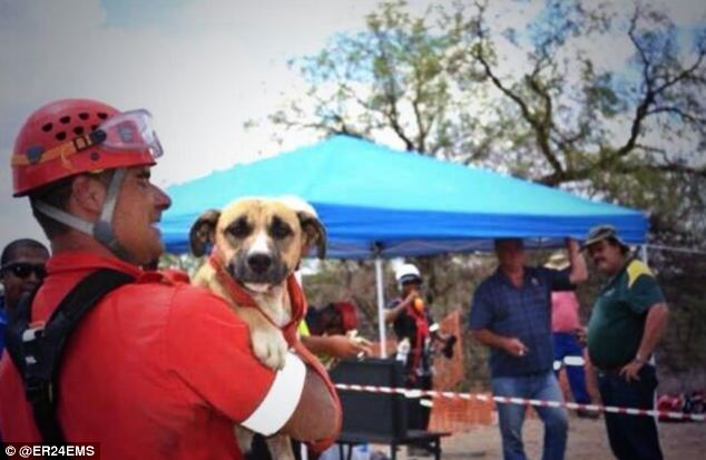 Det hele begynte da noen turister la merke til hunden som svømmet febrilsk nede i hullet og prøvde å finne veien ut.