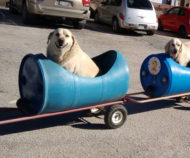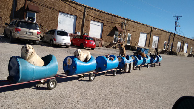 Hver gang hundene hører ham gjøre i stand toget og hekte det fast til sin traktor, blir de fra seg av begeistring.