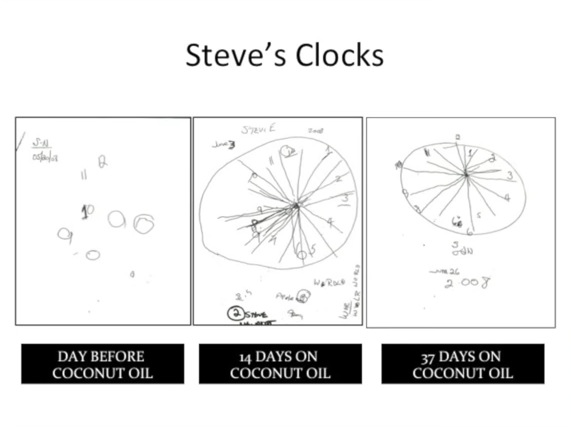 Selv om det kreves mye mer forskning på dette området, så viste Mary at kokosolje er et stoff med indikasjoner på at det kan være uoppdagede og viktige funn innenfor Alzheimers. Steve sin erfaring med kokosolje er positiv, men tilfellene er fremdeles sjeldne, sier forskere; det kan selvsagt være at Steve var et usedvanlig sjeldent et. Det bør også sies at det pr. dags dato er ingen vitenskapelige bevis for at kokosolje er en kur mot Alzheimers.