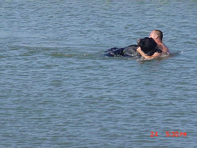 Omsider kom andre til for å hjelpe både mannen og dyret det siste stykket mot land.
